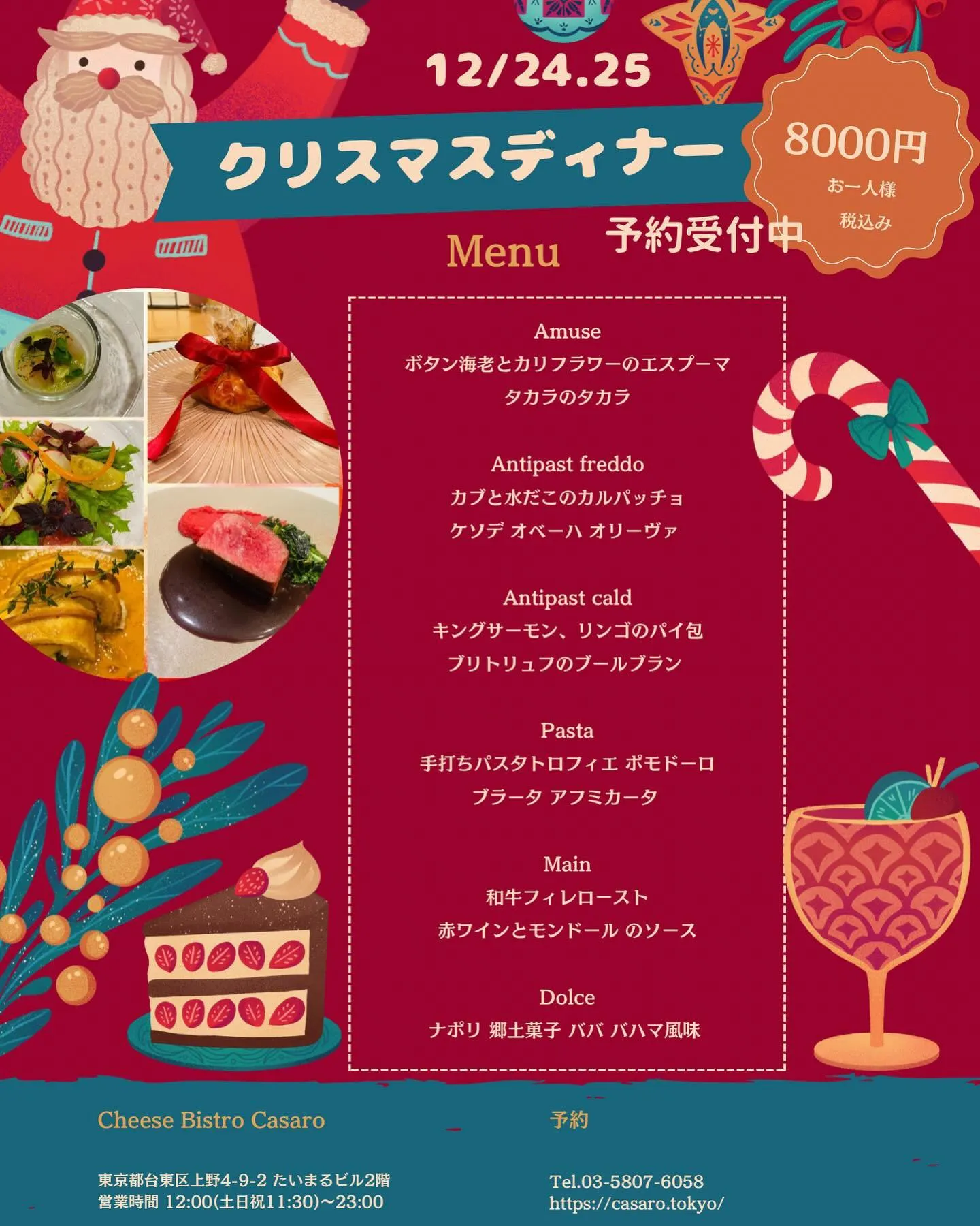 写真はクリスマスですが😂新年明けましておめでとうございます(*´꒳`*)2025年の営業は1月6日ランチからになりますm(__)m本年もどうぞ宜しくお願い致します(⋆ᴗ͈ˬᴗ͈)”#上野#チーズビストロカザーロ#ワイン当…
